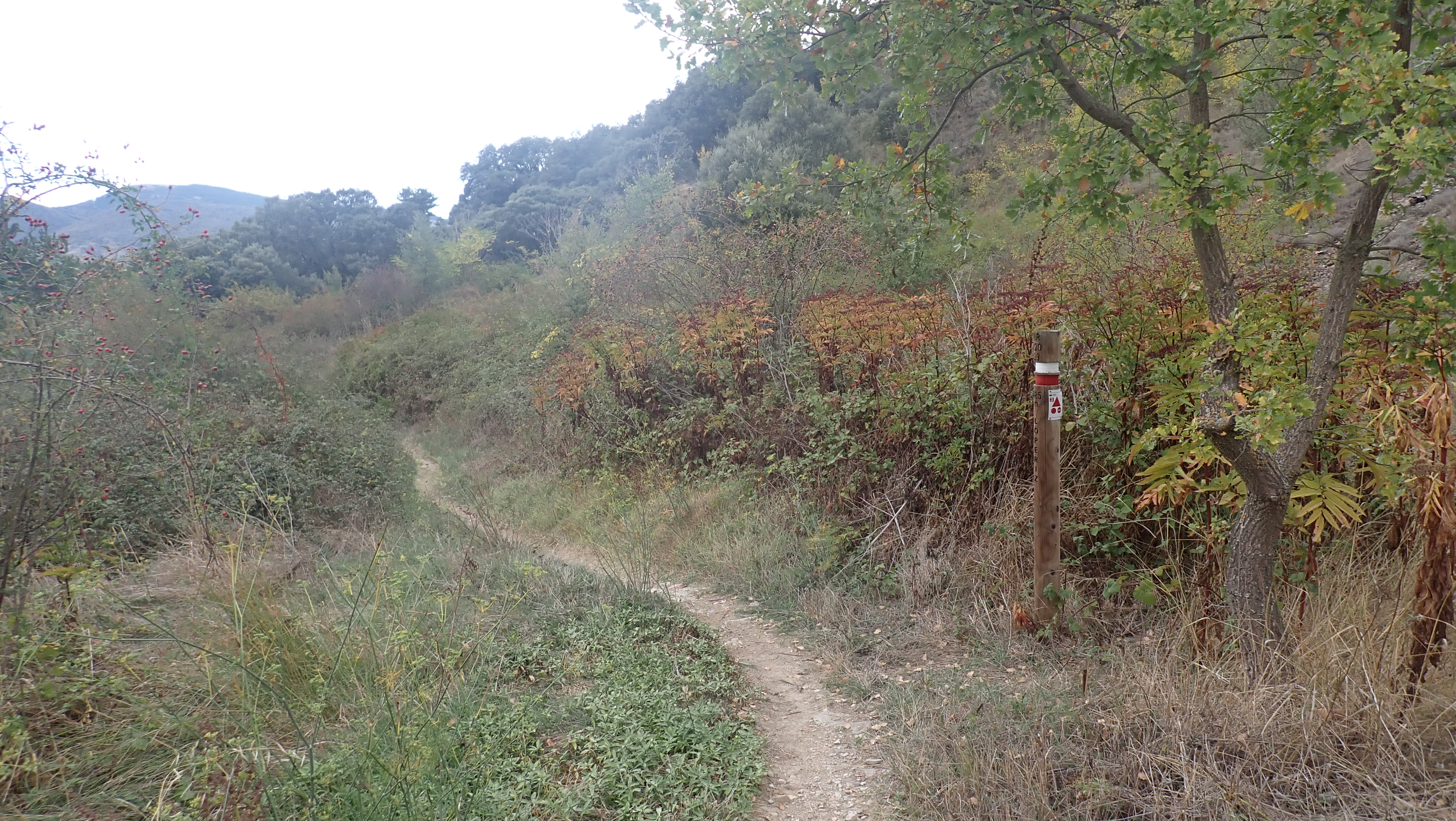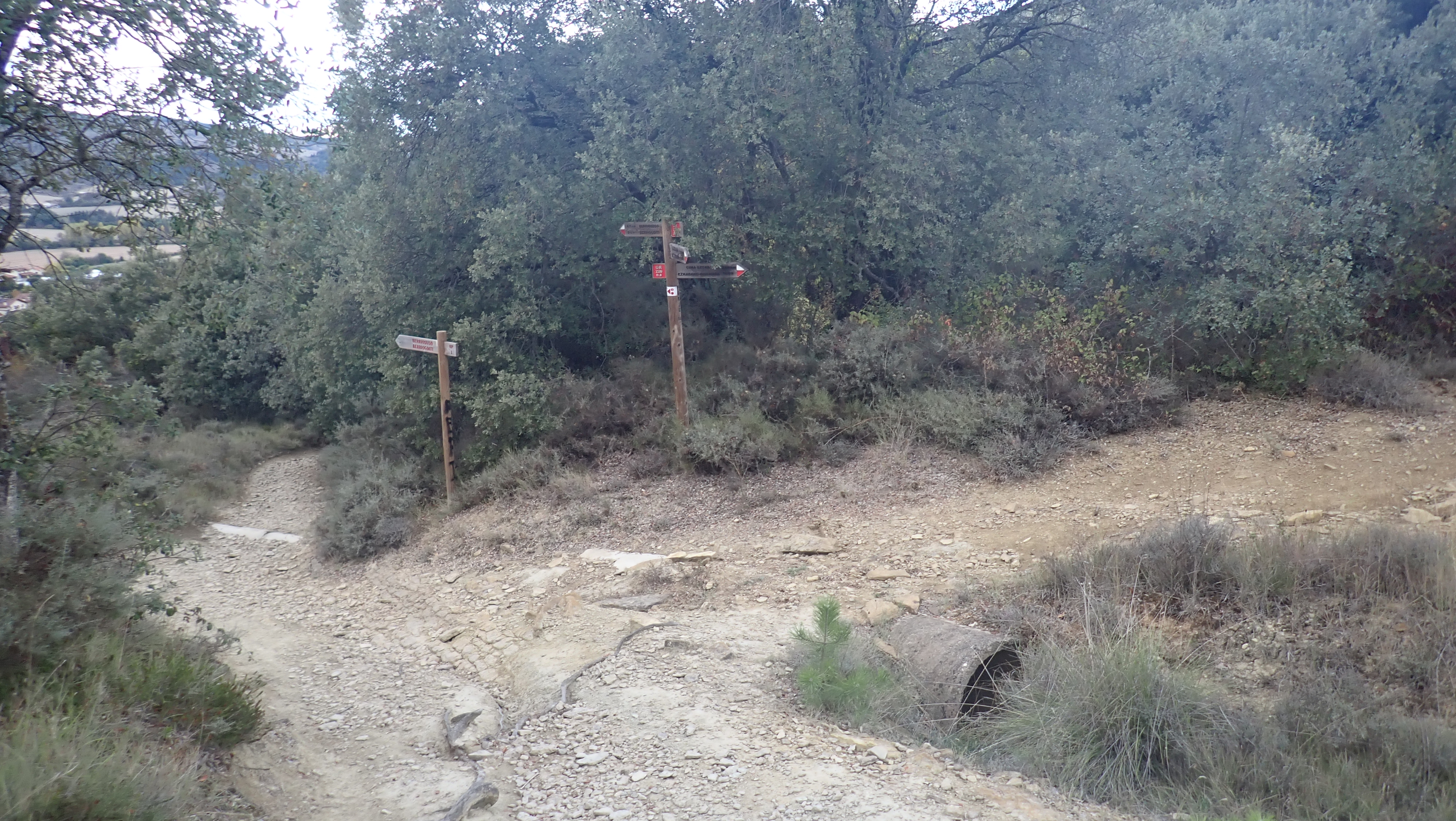 Continuamos por la izquierda siguiendo la dirección del GR®220 hacia Oteiza y después de pasar tres postes siguiendo siempre la dirección del GR®220 hacia Berriosuso, en descenso, llegaremos al poste de San Urbano.