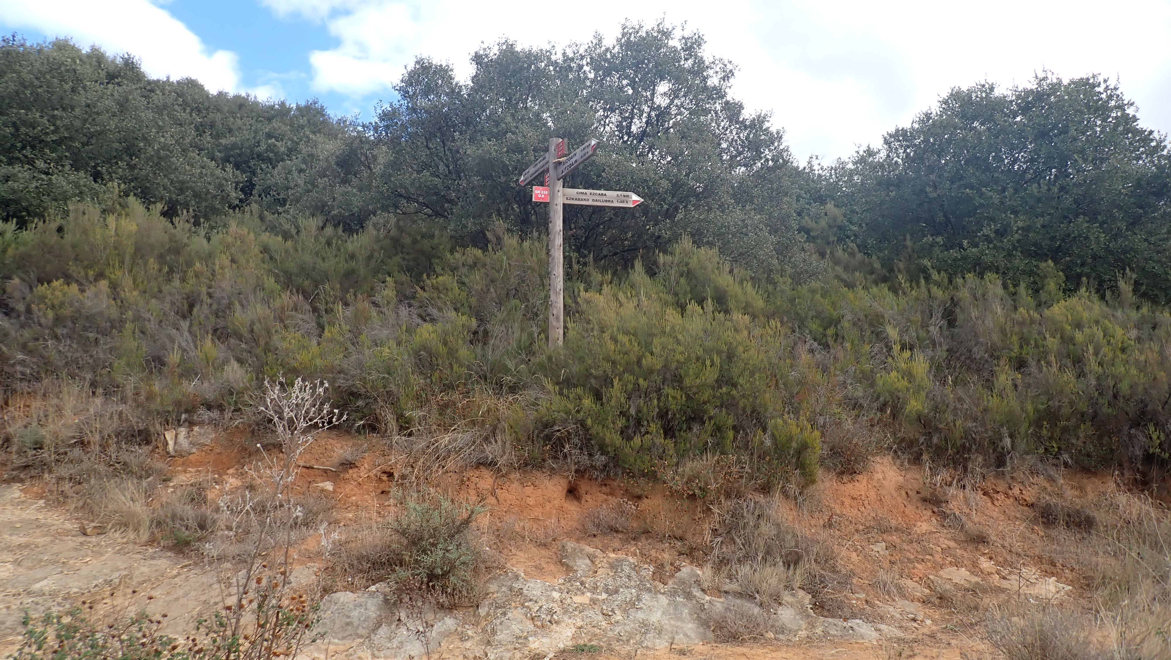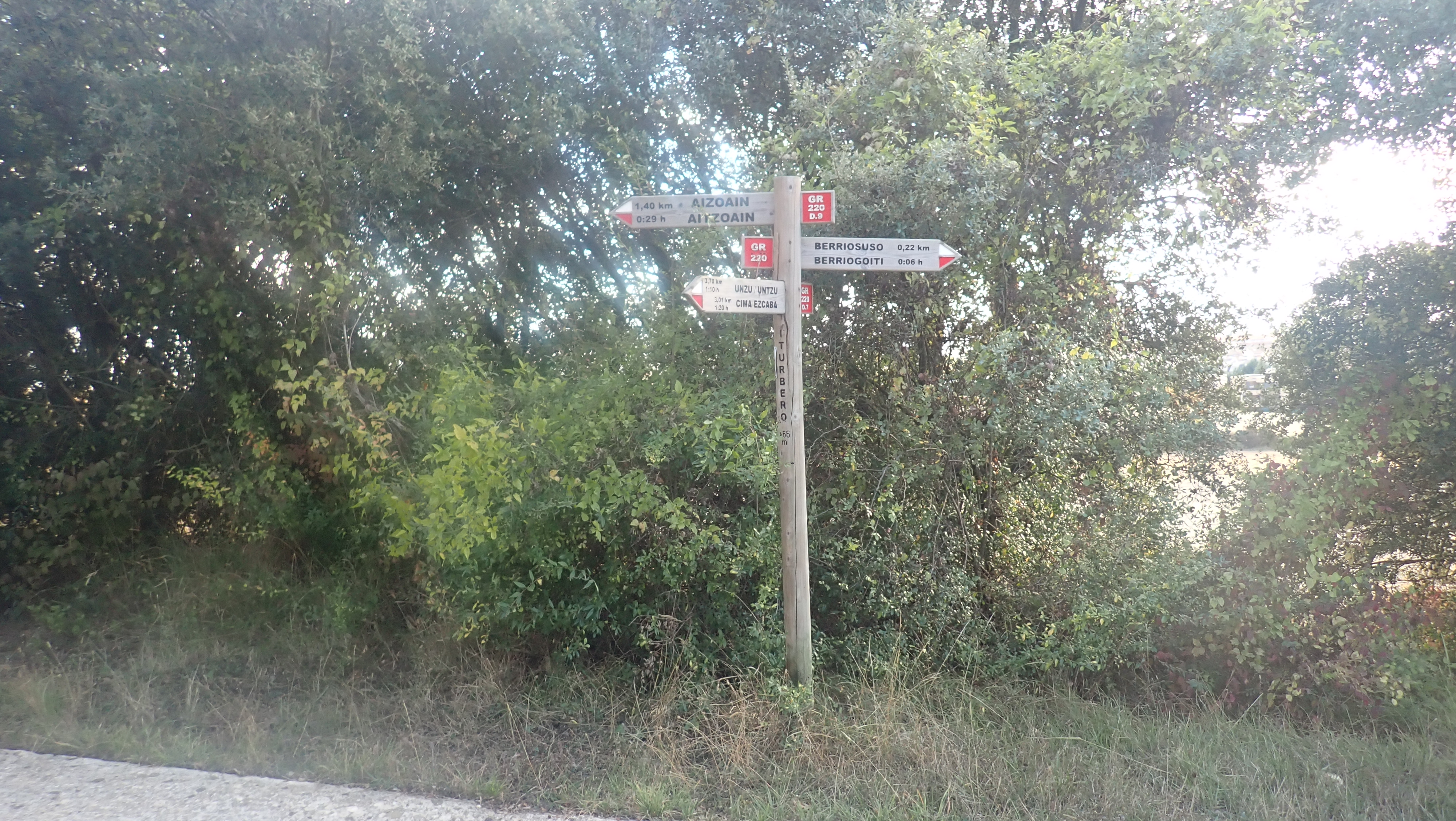 Siguiendo hacia la izquierda las indicaciones de la flecha del GR®220 hacia Berriosuso, en pocos minutos llegaremos al poste de Iturbero.