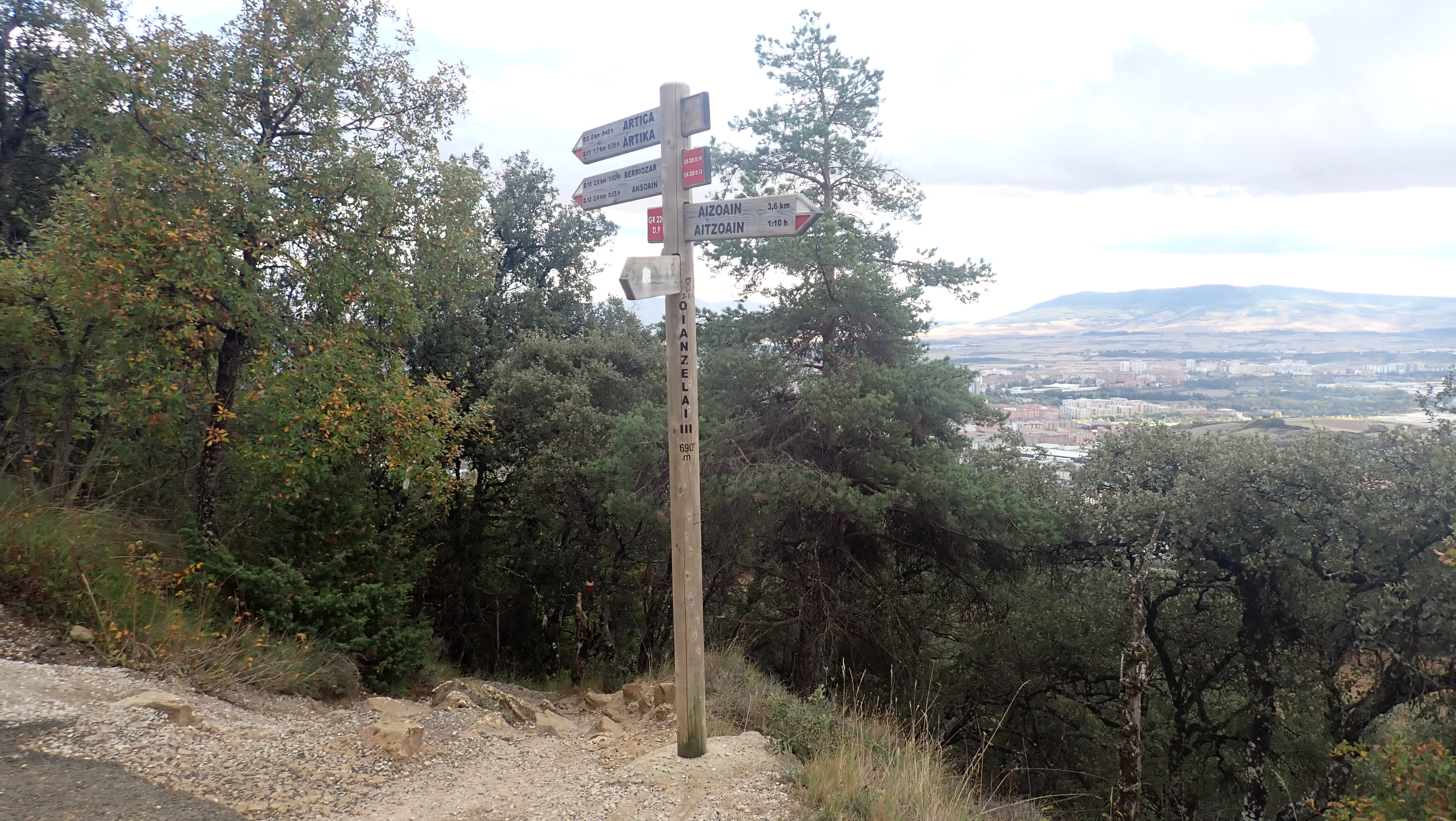Comenzamos este recorrido semicircular en la parte alta, junto al frontón San Miguel, del pueblo de Aitzoain en la ladera sur del monte Ezkaba, por la GR® 220 D.9.