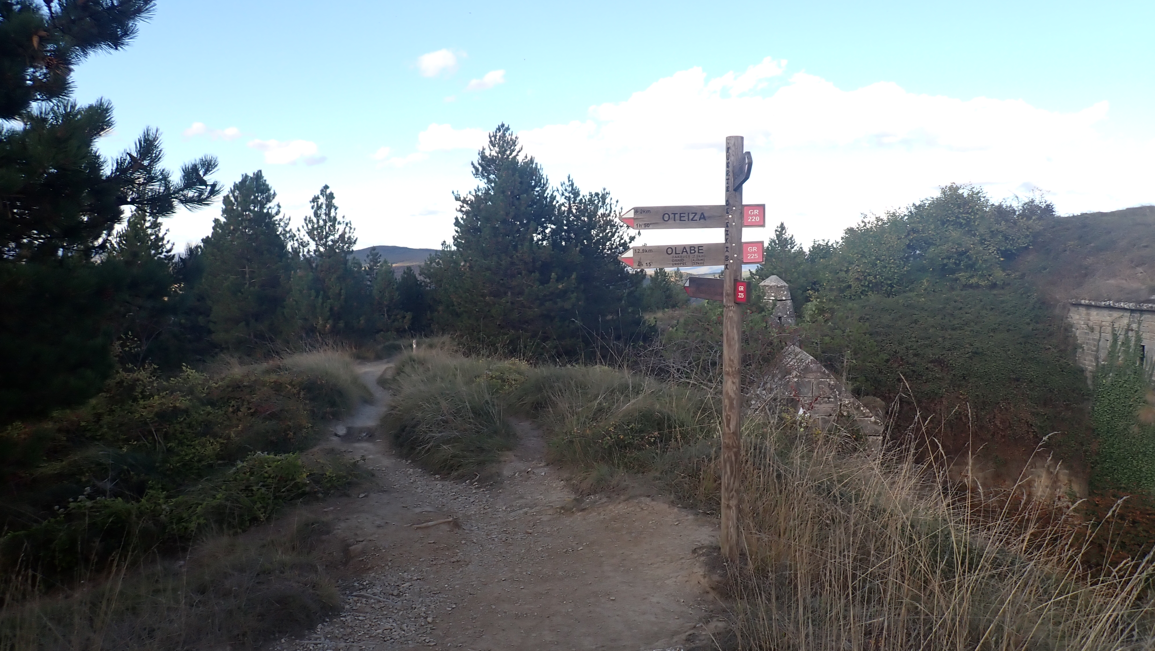 Continuamos a la izquierda siguiendo la dirección del GR®220 hacia Oteiza y, en pocos minutos llegaremos al poste Fuerte Ezkaba.