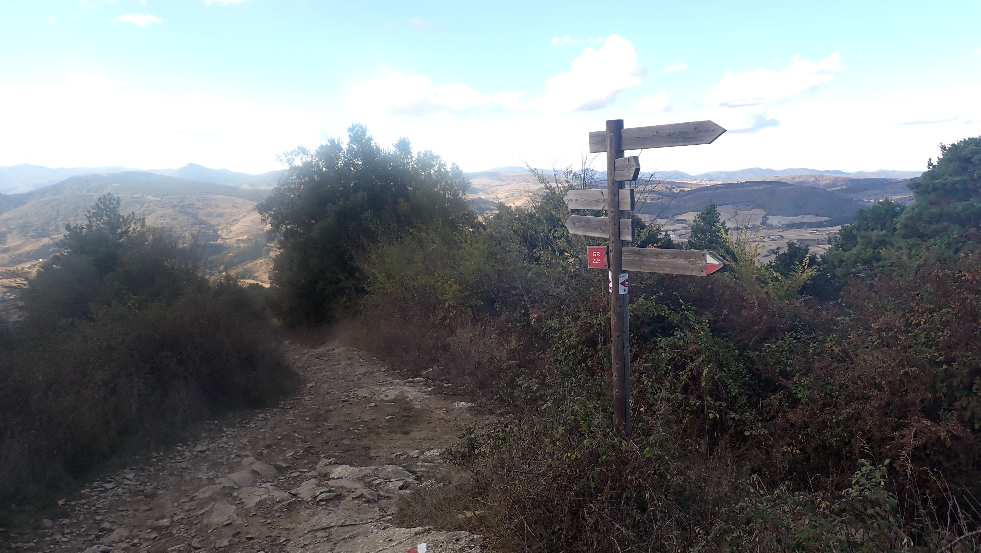 Continuamos camino, otra vez hacia la derecha por la flecha del GR®220 D.9, cima Ezkaba, por senda con bonitas vistas llegamos al poste de Barga.